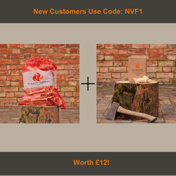 As a welcome gift, new customers receive one FREE bag of kindling and one FREE pack of firelighters, worth £12, with their first order. Use Code NVF1 at the checkout process.